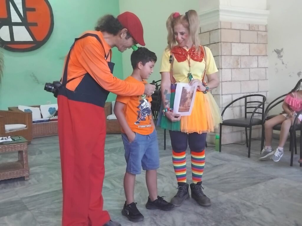 La jornada contó además con la participación de Grevy Pantoja, modelo, y Eduardo Leyva, fotógrafo y conferencista, quienes, vestidos de payasos y como actores del Grupo TIJO, lograron mantener la atención de los pequeños mientras compartían técnicas y secretos de la fotografía.
