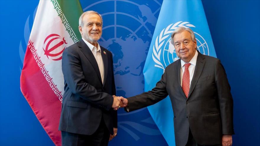 Durante una reunión con Antonio Guterres, el secretario general de la Organización de las Naciones Unidas (ONU), el presidente de Irán, Masud Pezeshkian, le agradeció sus esfuerzos por establecer la paz y su postura acertada respecto a la guerra de Gaza.
