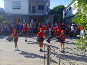 El evento deportivo Saltando con Alegría contó con la participación de varios centros escolares, y lo ganó la escuela primaria Antonio Sánchez Díaz. La actividad contó además con la presentación de la composición gimnástica de pequeño formato de la escuela primaria Hermano Saiz, ganadora de varios festivales de gimnasia aerobia en el territorio.