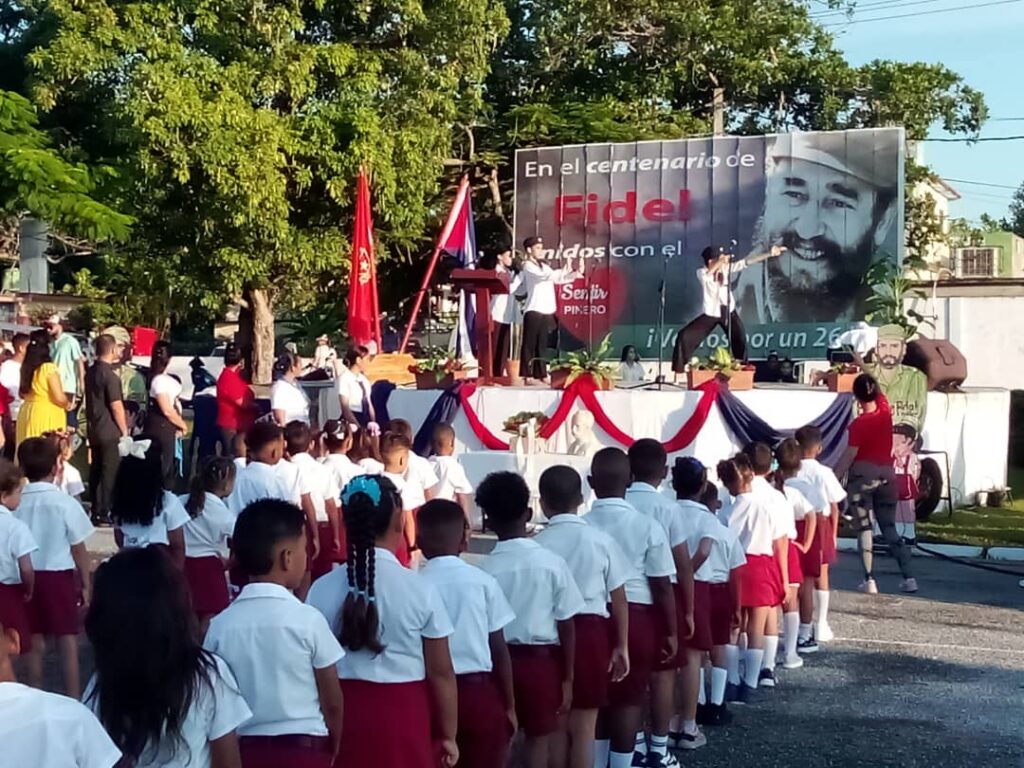 El acto central se realizó en la plaza memorial El Pinero, donde junto a las máximas autoridades del Municipio Especial y familiares, los estudiantes recibieron la pañoleta azul, símbolo de ser un pionero Moncadista.