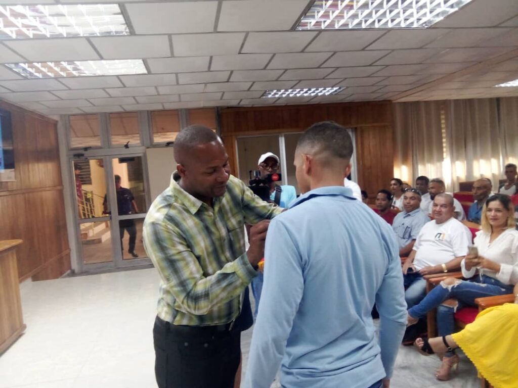 Los estímulos fueron entregados por Yainel Pacheco Casero, Miembro del Buró Municipal del Partido, Yudalis García Segura, Presidenta de la Asamblea Municipal del Poder Popular, Adiel Morera Macías, Intendente, y otros dirigentes municipales.