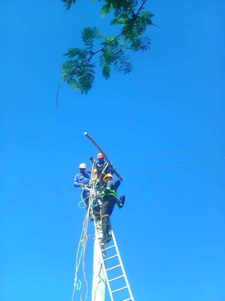Fernando Jardines, jefe de una de las brigadas de linieros de la empresa Eléctrica, declaró a Radio Caribe: “Estamos trabajando en el circuito número uno de lo que es el centro de Santiago de Cuba, nos mantenemos con la misma actitud y trabajando. En menos de una semana hemos logrado normalizar alrededor de 150 bancos transformadores que es lo que lleva el circuito número uno.