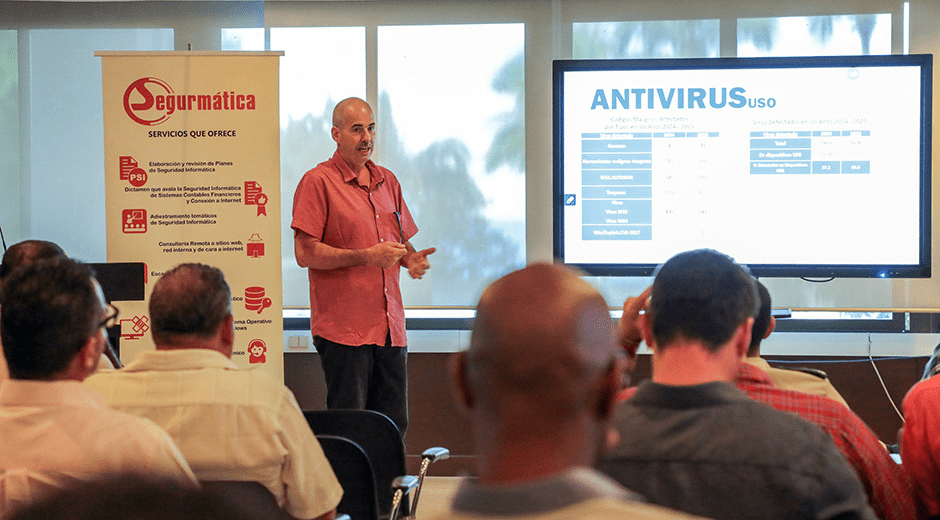 En un vídeo enviado a los asistentes al taller, un representante de Kaspersky Lab −multinacional rusa de seguridad informática con presencia en unos 200 países, con la cual Segurmática ha tenido relación por varios años− ofreció un panorama de la situación en Cuba, desde la experiencia de esa empresa, entre octubre de 2024 y octubre de 2025.
