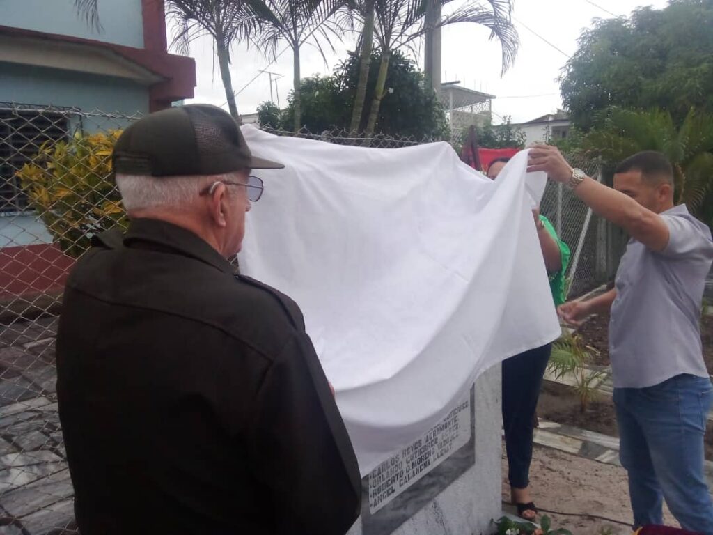 Develaron la tarja Rafael Ernesto Licea Mojena, Primer Secretario del Comité Municipal del Partido, y el Primer Coronel de la reserva Félix Delgado Álvarez, asesor del Ministro del Interior. MININT.
