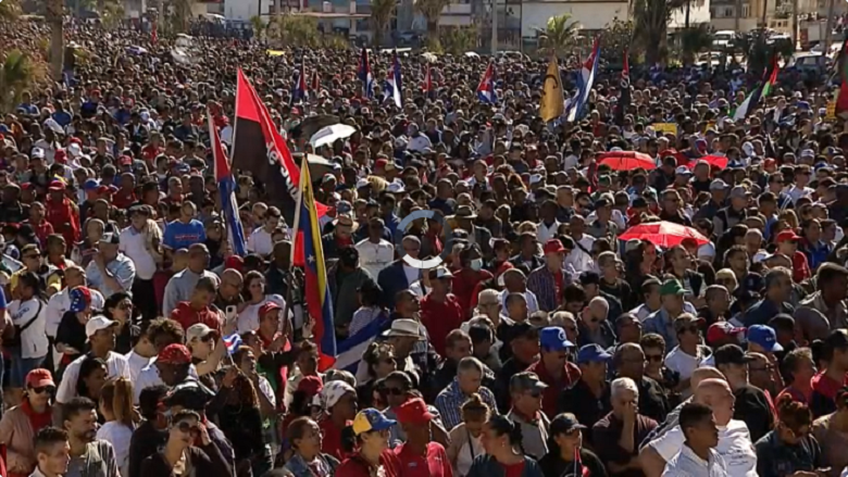 El presidente de Cuba, Miguel Díaz-Canel, encabezó hoy al acto de repudio y denuncia contra los ataques perpetrados por Estados Unidos contra Venezuela y el secuestro de su presidente constitucional, Nicolás Maduro.