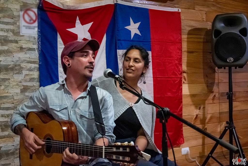 Heredero de los grandes trovadores, como Silvio Rodríguez y Pablo Milanés, el joven músico y compositor se presentó en el K´runga Restobar, donde compartió escenario con la cantora chilena Fabiola Sheihing, en una noche de solidaridad con Cuba.