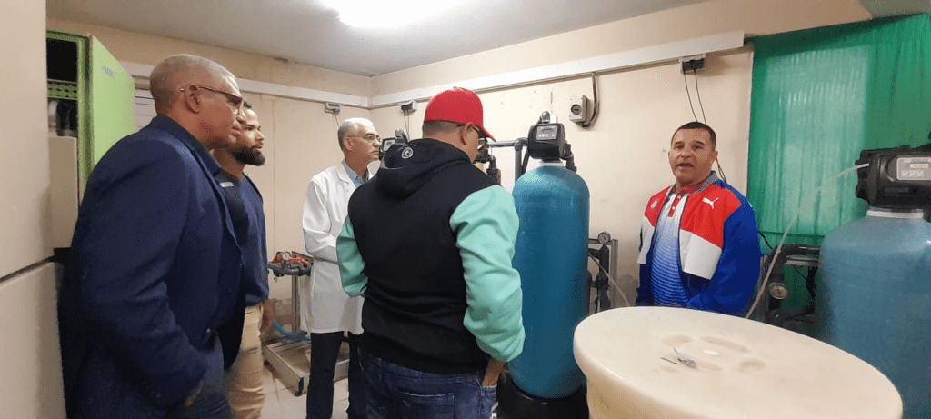 La visita continuó en la Sala de nefrología, donde se identificaron pendientes relacionados con el mantenimiento, especialmente en áreas técnicas como la planta de tratamiento de agua, esencial para garantizar la calidad del servicio a los pacientes.