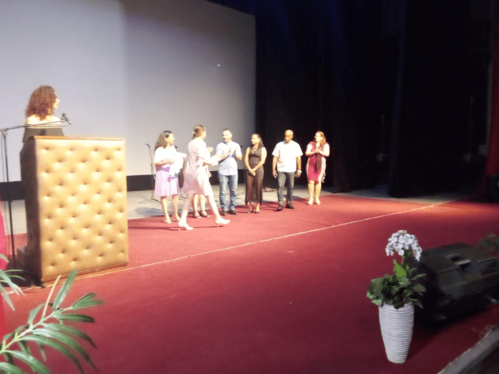 Ante un cine/teatro colmado de trabajadores de los 17 sindicatos radicados en el territorio pinero, se entregaron los estímulos a quienes lo merecía por su actitud ante las tareas sindicales y apoyo a la producción y los servicios, lo recibieron en medio de aplausos.