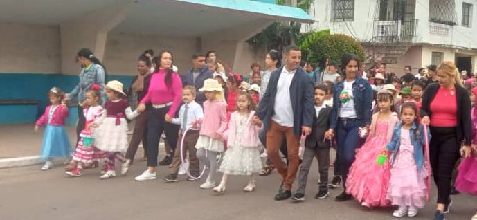 Volvieron los personajes de La edad de Oro a dar alegría a las calles pineras, allí estuvieron representadas Pilar, El Señor Don Pomposo, la Muñeca negra, para desde este Desfile Pioneril Martiano mantener viva la obra literaria del Apóstol.