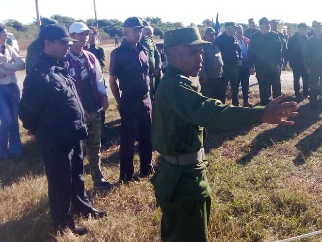Esteban Lazo Hernández, miembro del Consejo de Defensa Nacional, al compartir, este sábado, con pineros que participaron en una jornada de preparación combativa, en el reparto Juan Delio Chacón, destacó los avances de la Revolución, sus logros y cuan amenazados estamos hoy por la agresividad del imperialismo yanqui.