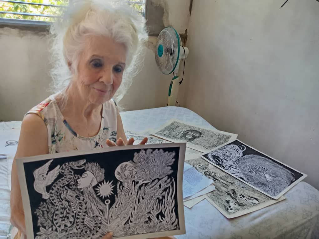 ¿Qué cosas de la vida cotidiana le inspiran a crear? Mija, todo lo bello que nos rodea, la naturaleza, el sol, la noche, la lluvia, todo tiene su encanto. ¿Qué significa para usted el arte en esta etapa de la vida? Significa estar viva y desear todavía poder vivir un tiempo más para crear algo que yo me sienta feliz.